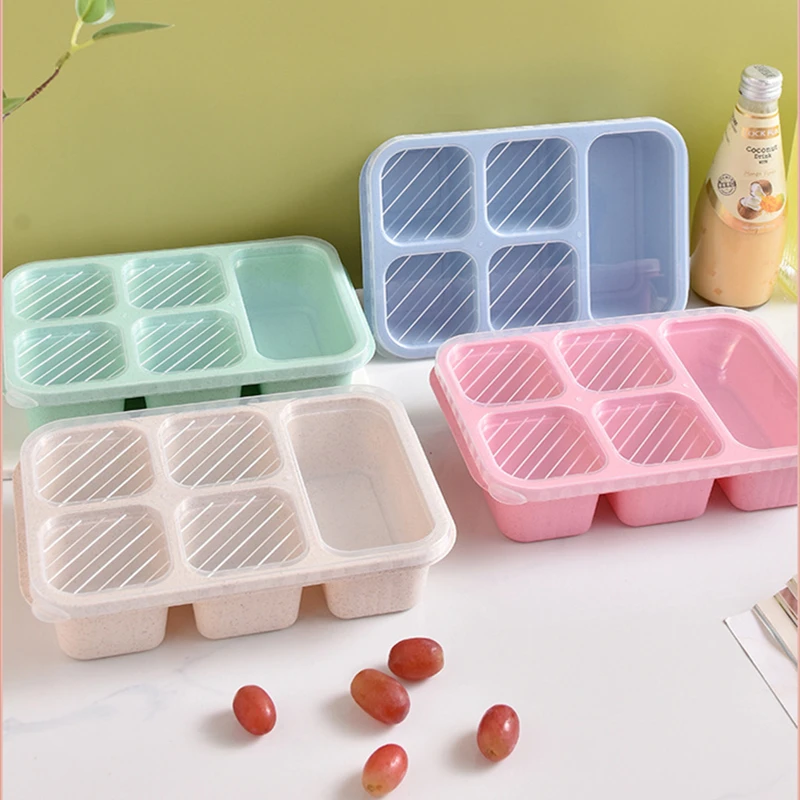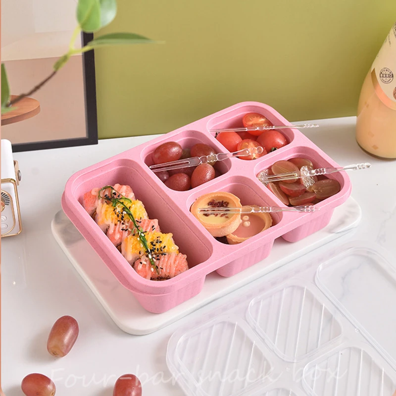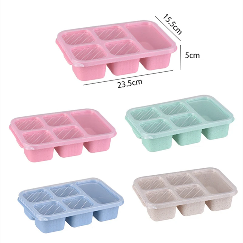 New Wheat Straw Lunch Box Heat-Resistant Leak Proof Dinnerware Fruit Case 5-Compartment Plastic Bento Box Divided Light Food Box